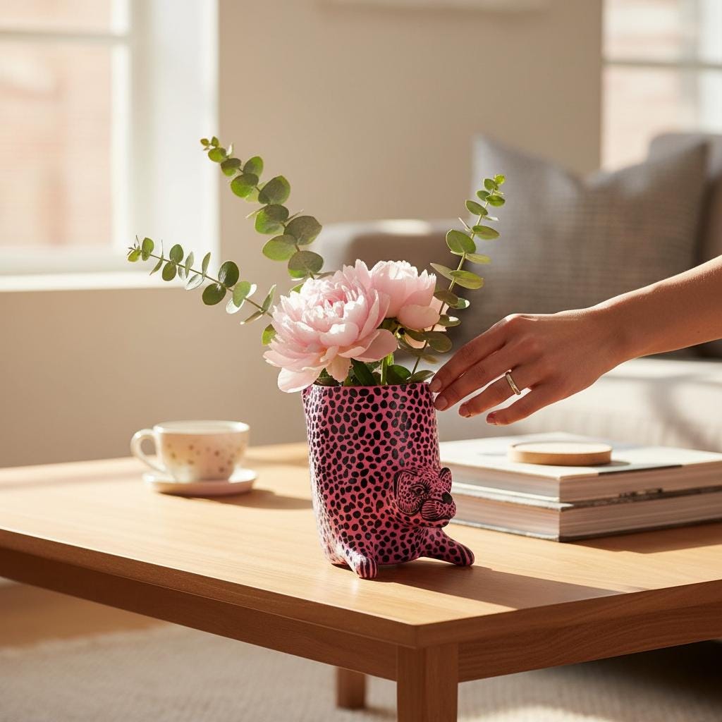Hand-Painted Terracotta Jaguar Sculpture: Pink Home Decor