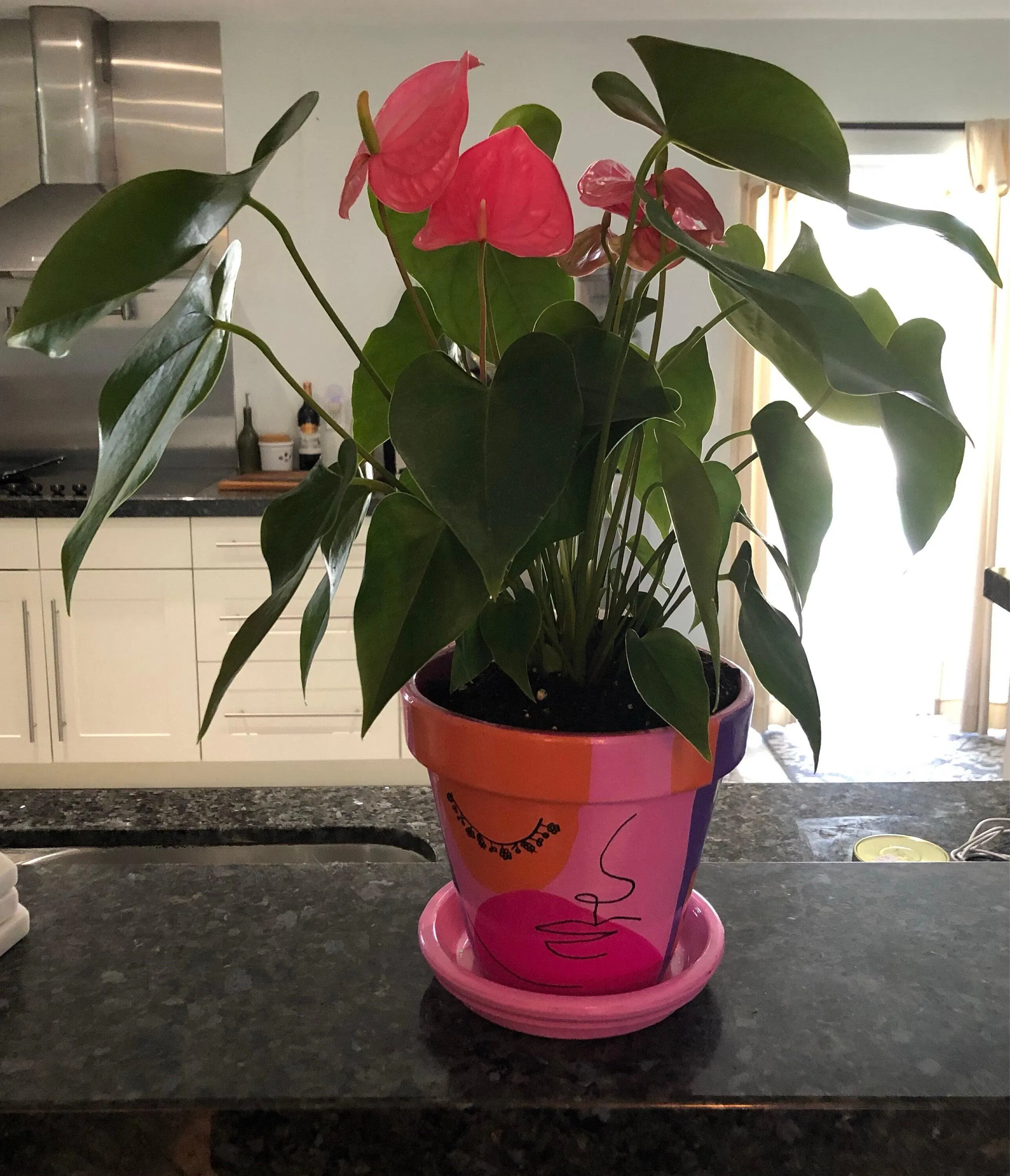 Painted Clay Plant Pot: Pink Woman Profile Design, Includes Saucer